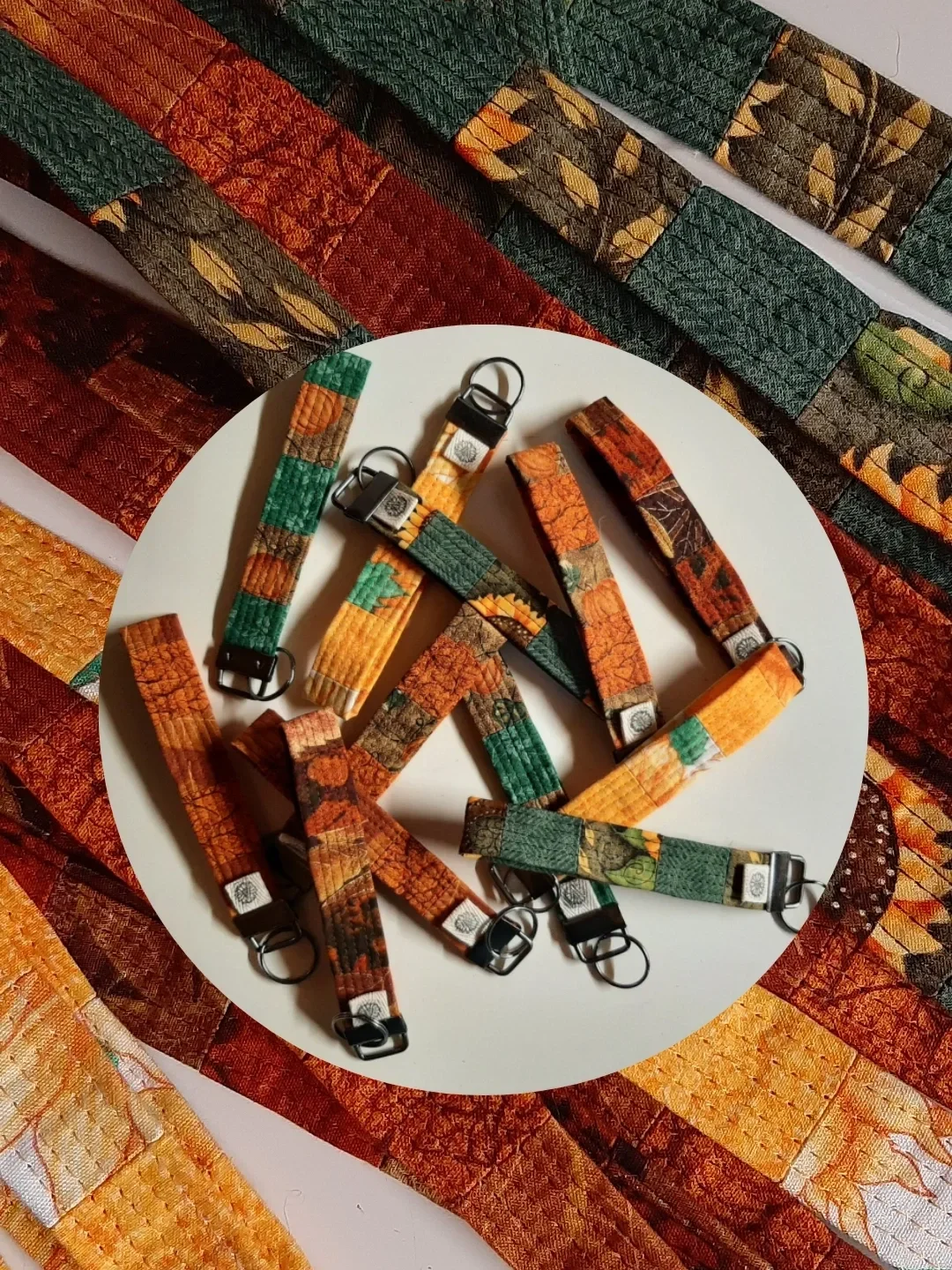 Upcycled creations including patchwork thrifted shirts, small, medium and large zip pouches + thrifty things.